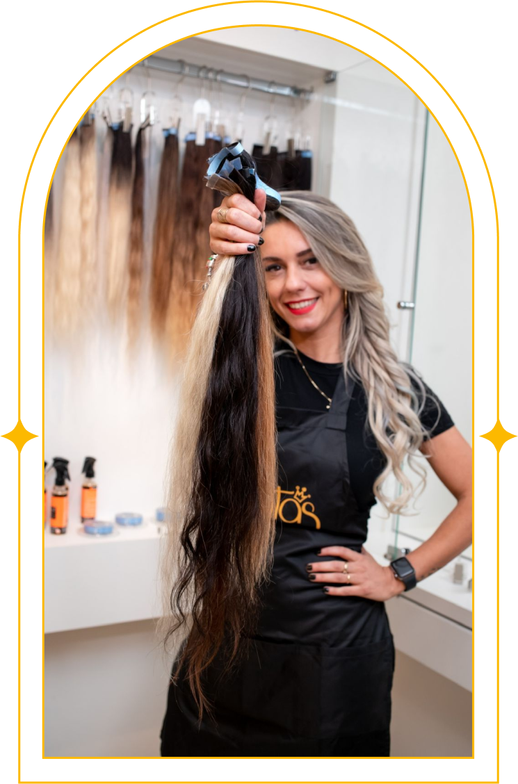 Quatro anos após iniciar na profissão, me apaixonei por Mega Hair. Hoje, sou especialista em Colorimetria e Mega Hair. Já investi mais de R$ 100.000,00 em cursos e desenvolvi técnicas rápidas com resultados incríveis.